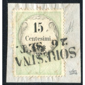 su piccolo frammento con annullo di Soresina, perfetta a centrata, siglata Alberto Diena e Luigi Gazzi, ottima qualità, ben dentellato, Sassone 7 Euro 90,00
