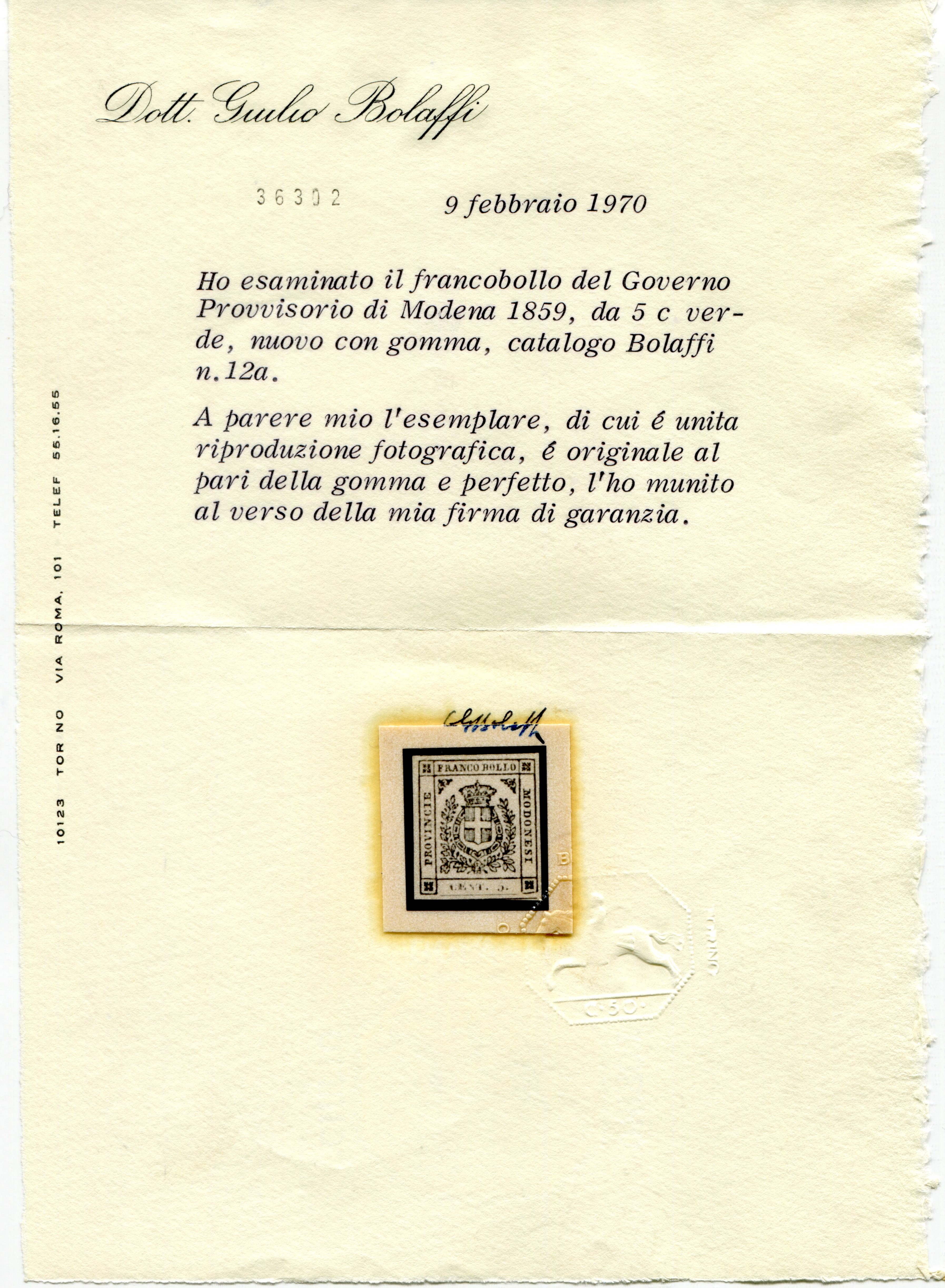traccia di linguella, perfetto, ben marginato, splendido e di ottima qualità, cert Giulio Bolaffi, Sassone 12 Euro 2400,00
