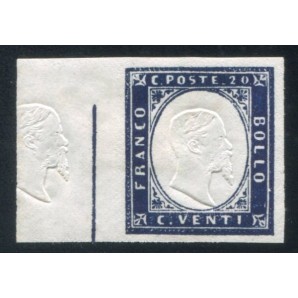 nuovo traccia di linguella impercettibile, bordo integrale di foglio a sinistra con impronta di ulteriore effige e linea di riquadro, raro, siglato per esteso Giulio Bolaffi, Sassone 15E euro 1300,00