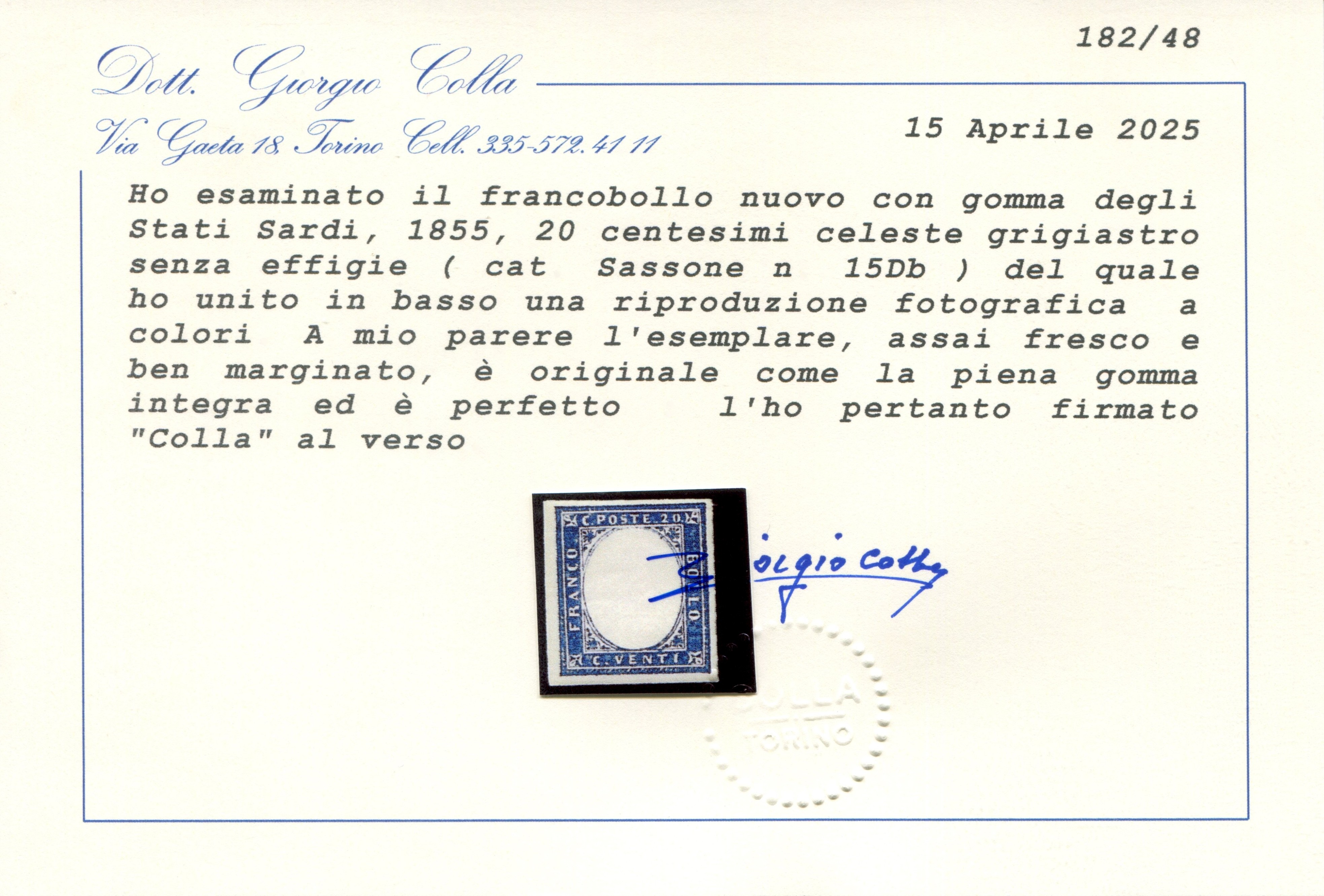 perfetto, ampi margini da ogni lato, nuovo gomma integra, non comune, Sassone 15D varietà Euro 2000,00