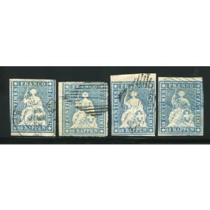 non comune lotto comprendente 4 esemplari nelle tirature note, tutti perfetti e ben marginati, non comuni, 27 + 27a + 27b + 27c