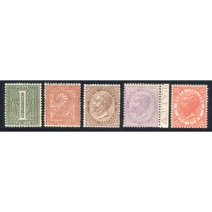 la serie completa di 5 valori senza i rari, tutti nuovi gomma integra, di qualità scelta e ben centrati, Sassone T14/T15+T19+T21/T22
