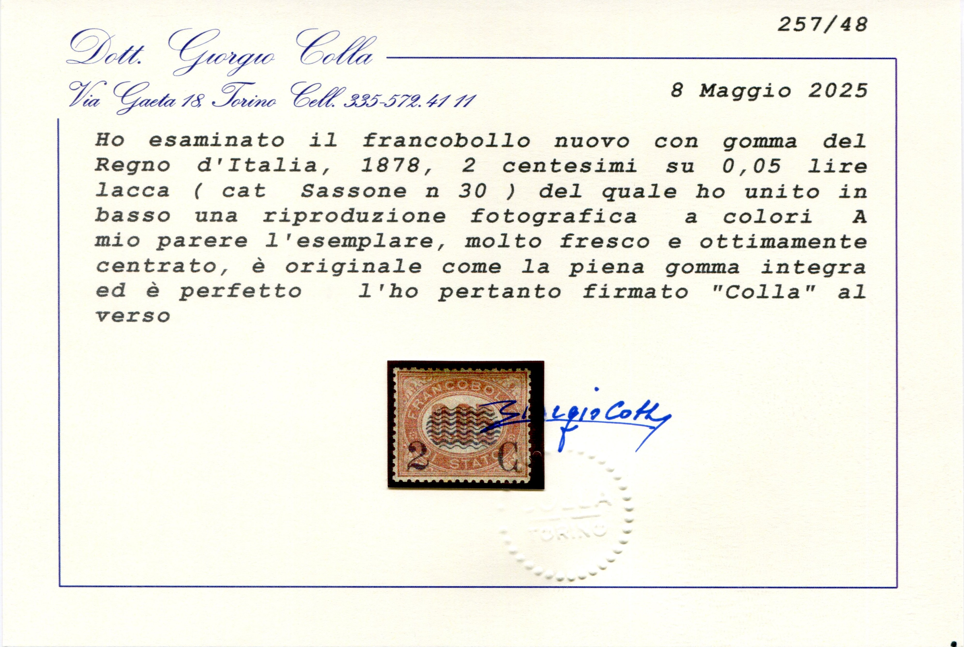 nuovo perfetto, gomma integra, ottima centratura, cert. Colla e sigla Alberto Diena, Sassone 30 Euro 2500,00