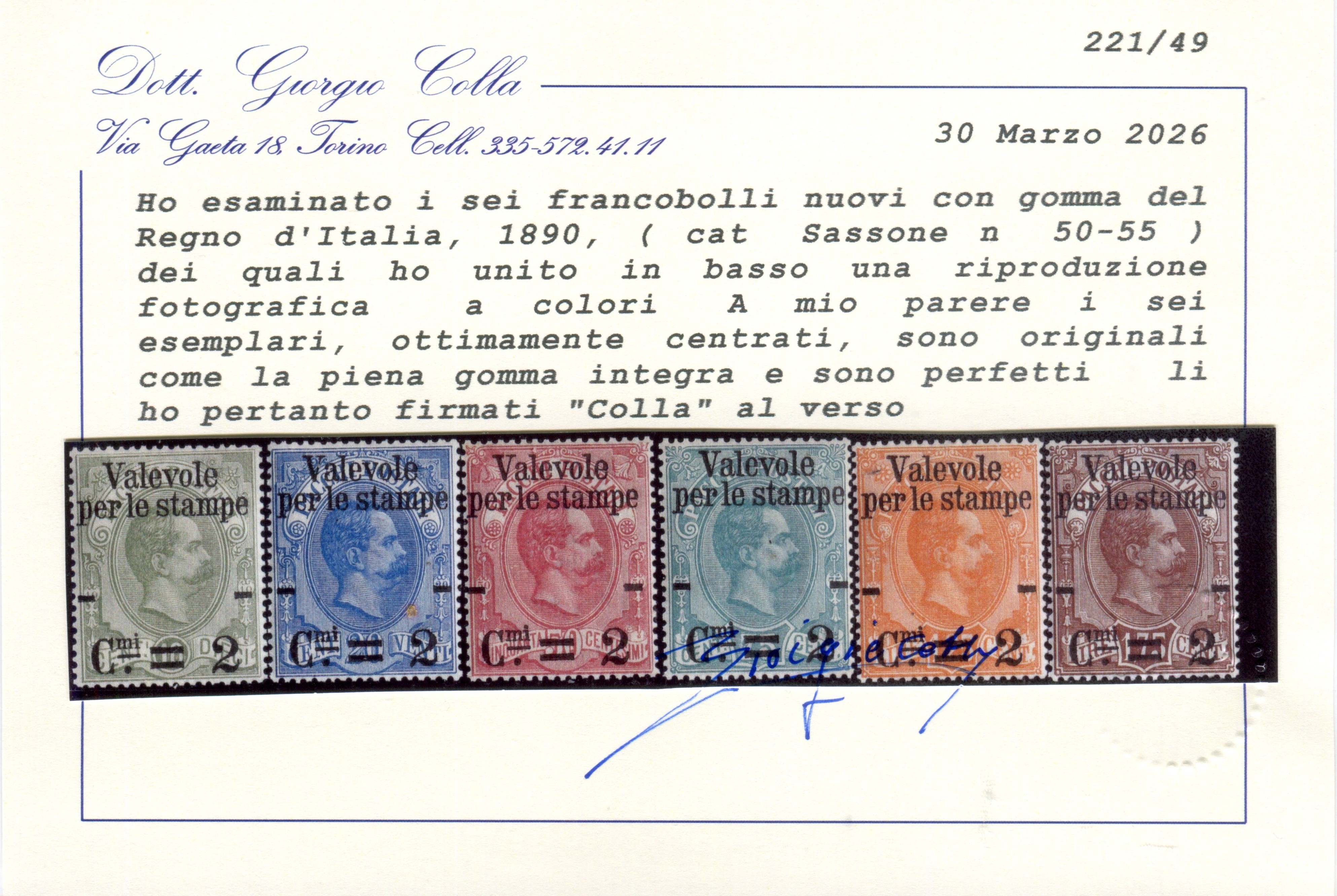 nuovi gomma integra, perfetti, centratura straordinaria, rara serie, cert. Colla, 50/55