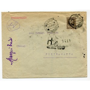 su lettera da Bologna 10.6.1929 per Pietrasanta, raro e perfettamente centrato, cert. Diena, Sassone 242 Euro 19.500,00