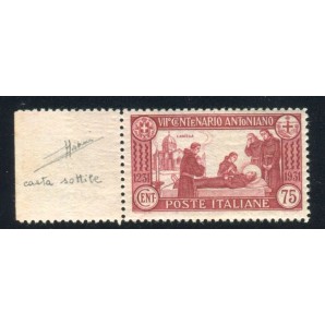 nuovo con gomma integra, non comune, bordo di foglio, ottimamente centrato, siglato Sorani, 299c Euro 1800,00