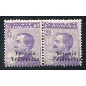 un esemplare con T di tridentina inclinata verso destra, gomma integra, in coppia con normale, raro, perfetti, Sassone 26+26da Euro 2300,00
