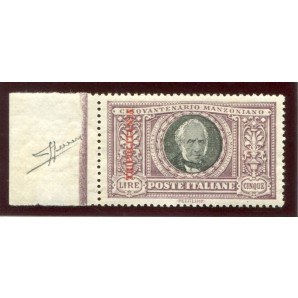 nuovo gomma integra, centrato, bordo di foglio a sinistra, perfetto e molto fresco, siglato Alberto Diena, cert. Sorani, 16 Euro 3200,00