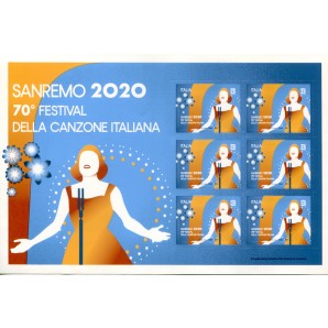 minifoglio di 6 valori emesso per commemorare 70 festival Sanremo, perfetto.