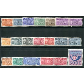 emissione completa con i due alti valori, comprensiva del 150 lire stampato su carta fluorescente 16A, ed il 3.000 lire ultimo pacco in concessione emesso (1984), tutti perfetti, alcuni ottimamente centrati, gomma integra, 5/8 + 10/11 + 13/22 +16A
