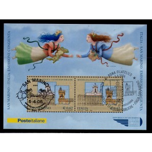 usato con annullo di San Marino e Repubblica, perfetto, emissione congiunta con Italia, tiratura limitata a pochi esemplari, Sassone bf 48