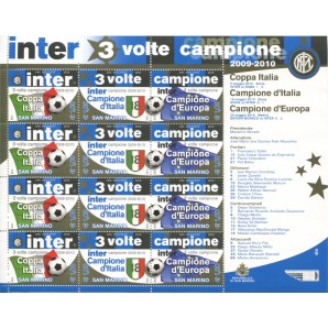 nuovo gomma integra, emesso per commemorare il glorioso triplete della squadra nerazzurra, Unificato 2290/2 minifoglio