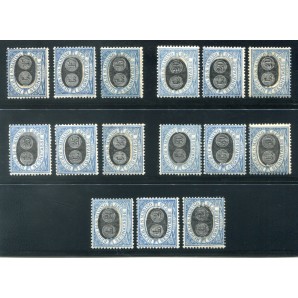 serie di 15 val. nuovi gomma integra, perfetti, tutti di buona/ottima centratura, tax 32/46 Euro 1300,00+