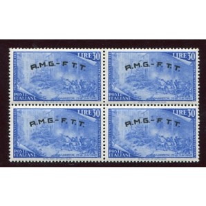 blocco di 4 gomma integra, un esemplare senza punto dopo la prima F, non comune, 27+27a