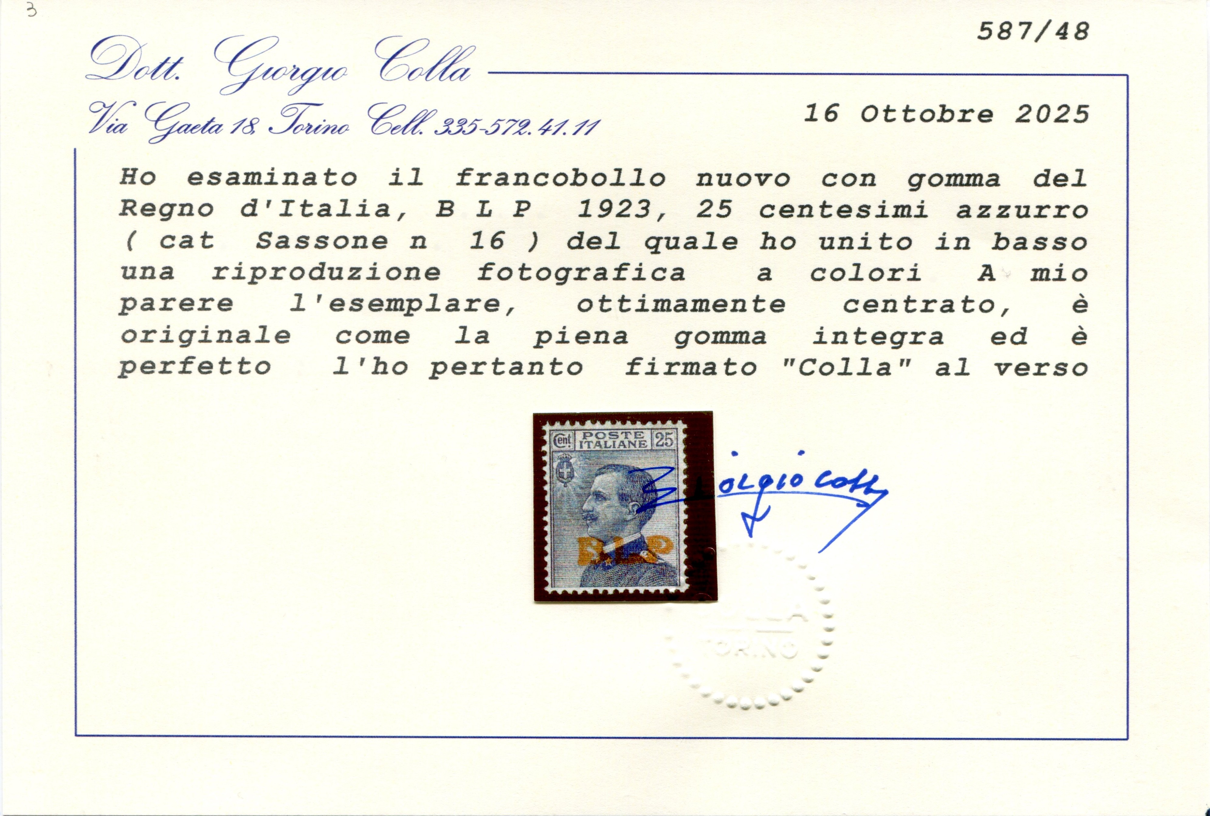 nuovo gomma integra, perfetto, ottima centratura, cert. Colla, 16 Euro 3750,00