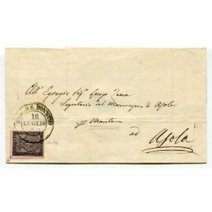 angolo di foglio, isolato su lettera da Borgo San Donnino 18 luglio 58 margini da ogni lato, qualità rara, siglato Colla, Sassone 3