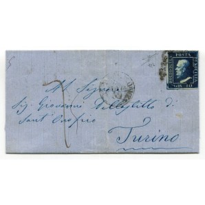 isolato da Palermo per Torino, ampi margini, lettera molto fresca, cert. Sorani, Sassone 12b Euro 6250,00